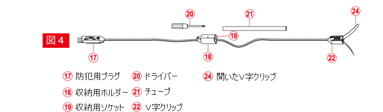 ![]() 2.この時、防犯パーツのV字型金属クリップが開くと 同