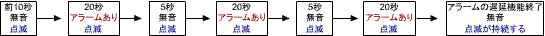 ドア/窓/引き出しが開くと、遅延機能が以下のように作動します(計80秒)。 ![]() ご注意:現在起動中のアラームモード(即時/遅延)を切り換える場合は、V字クリップを一度合わせ、 又は絶縁プラグを差し込んでから、再び新しいモードや他の機能に切り替えてください。 この設定を行わないと、前に設定したモードのまま作動し続けます。 |